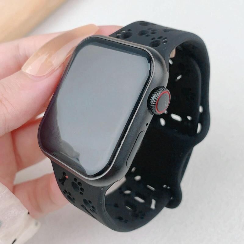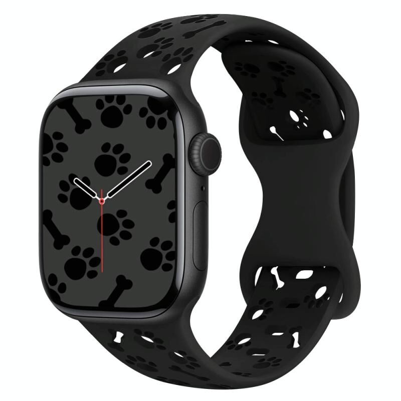 Για Apple Watch 42mm / 41mm / 40mm / 38mm Λουρί ρολογιού σιλικόνης με αγκράφα πεταλούδας και σχέδιο πατούσας σκύλου (Μαύρο)