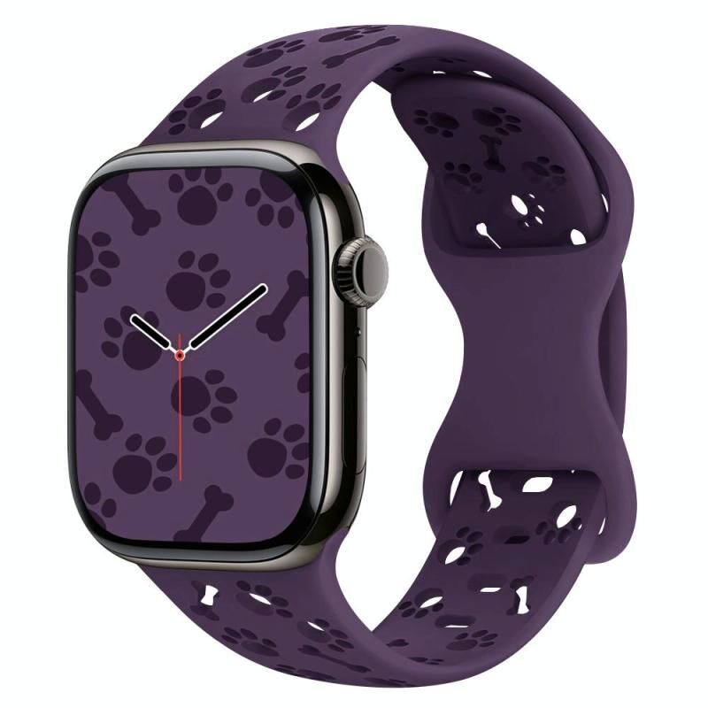 Για Apple Watch 42mm / 41mm / 40mm / 38mm Λουρί ρολογιού σιλικόνης με αγκράφα πεταλούδας και σχέδιο πατούσας σκύλου (Σκούρο μωβ)