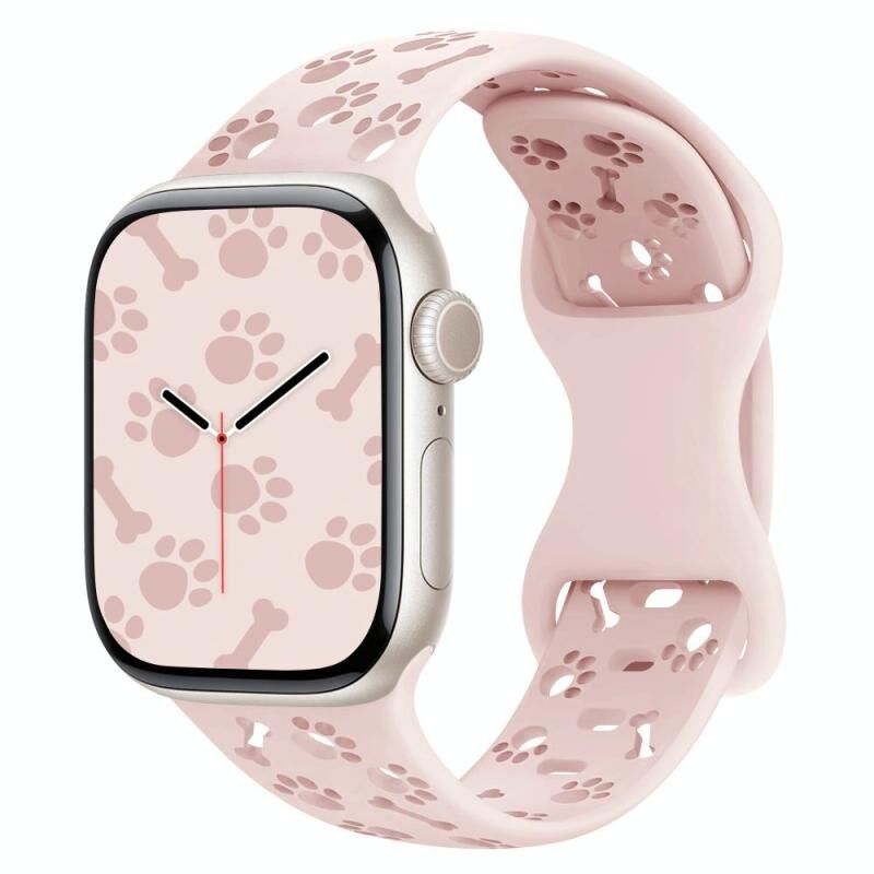 Για Apple Watch 42mm / 41mm / 40mm / 38mm Λουρί ρολογιού σιλικόνης με αγκράφα πεταλούδας και σχέδιο πατούσας σκύλου (Κόκκινο Ρόδι)