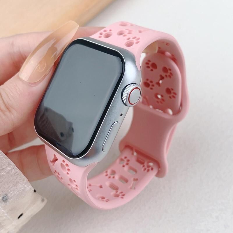 Για Apple Watch 42mm / 41mm / 40mm / 38mm Λουρί ρολογιού σιλικόνης με αγκράφα πεταλούδας και σχέδιο πατούσας σκύλου (Ροζ άμμος)