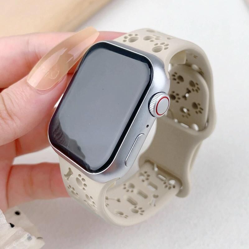 Για Apple Watch 42mm / 41mm / 40mm / 38mm Λουρί Σιλικόνης με Αγκράφα Πεταλούδας και Σχέδιο Πατούσας Σκύλου (Starlight)
