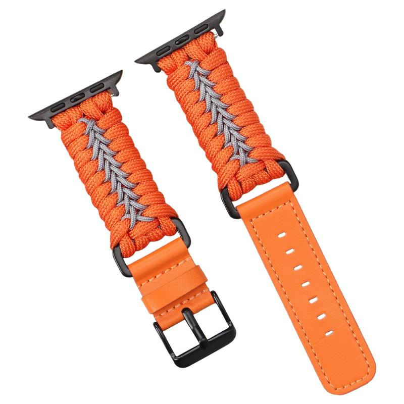 For Apple Watch 42mm / 41mm / 40mm / 38mm Double Leather Buckle Paracord Nylon Watch Band(Orange)