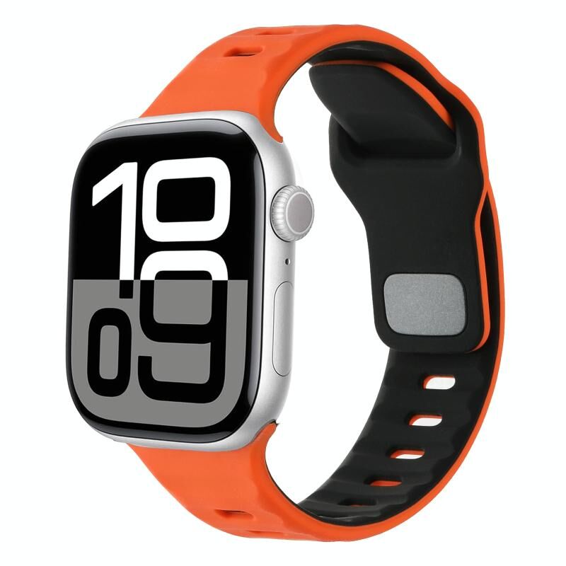 Λουράκι ρολογιού σιλικόνης διχρωμίας με οριζόντιες ρίγες για Apple Watch 42mm / 41mm / 40mm / 38mm (Πορτοκαλί Μαύρο)