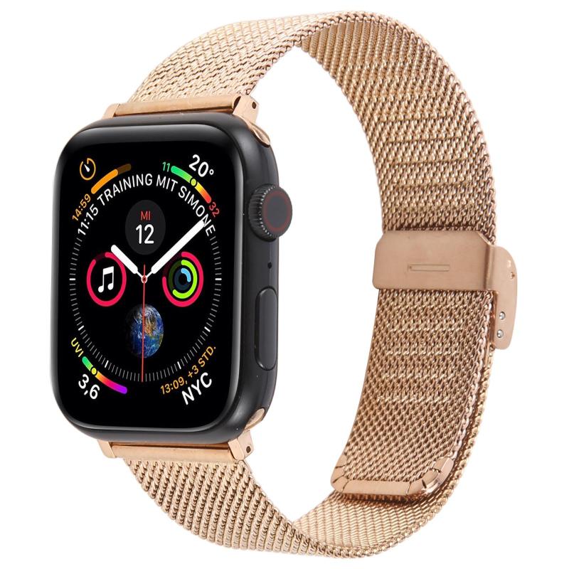 For Apple Watch 42mm / 41mm / 40mm / 38mm Integrated Buckle Embossed Thick Milanese Metal Watch Band(Rose Gold)