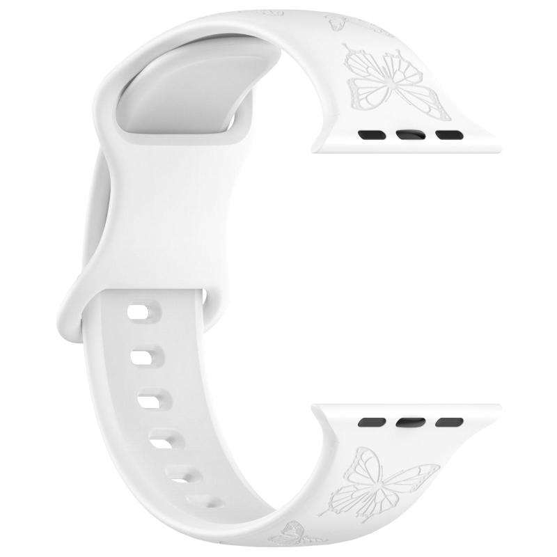 For Apple Watch 42mm / 41mm / 40mm / 38mm Kalebol 8-shaped Buckle Butterfly Embossed Silicone Watch Band(White) (Kalebol)