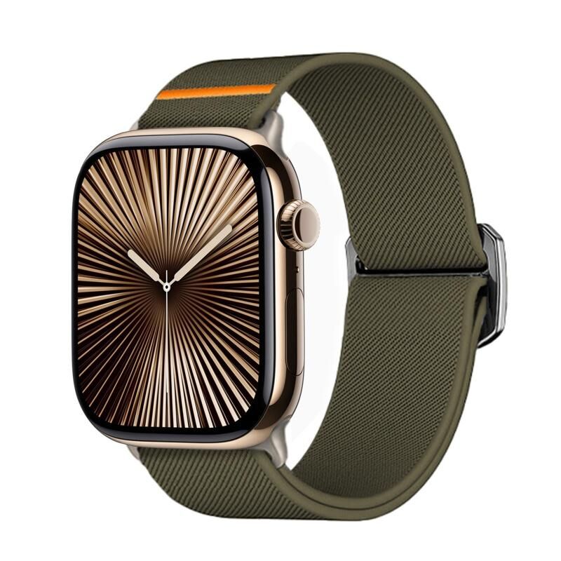 For Apple Watch 42mm / 41mm / 40mm / 38mm Kalebol Bull Bead Buckle Elastic Nylon Watch Band(Army Green) (Kalebol)