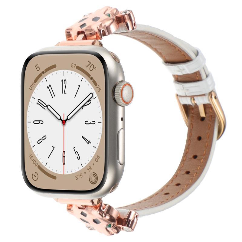 Λουράκι ρολογιού για Apple Watch 42mm / 41mm / 40mm / 38mm με κεφαλή λεοπάρδαλης, υφή μπαμπού, από δέρμα (Ροζ Χρυσό, Γκρι)