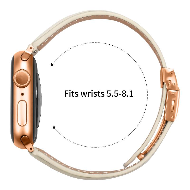 Για Apple Watch 42mm / 41mm / 40mm / 38mm Λουρί Ρολογιού από Δέρμα με Αγκράφα Turtle Back σε Χρώμα Ροζ Χρυσό με Υφή Λίτσι (Ροζ)