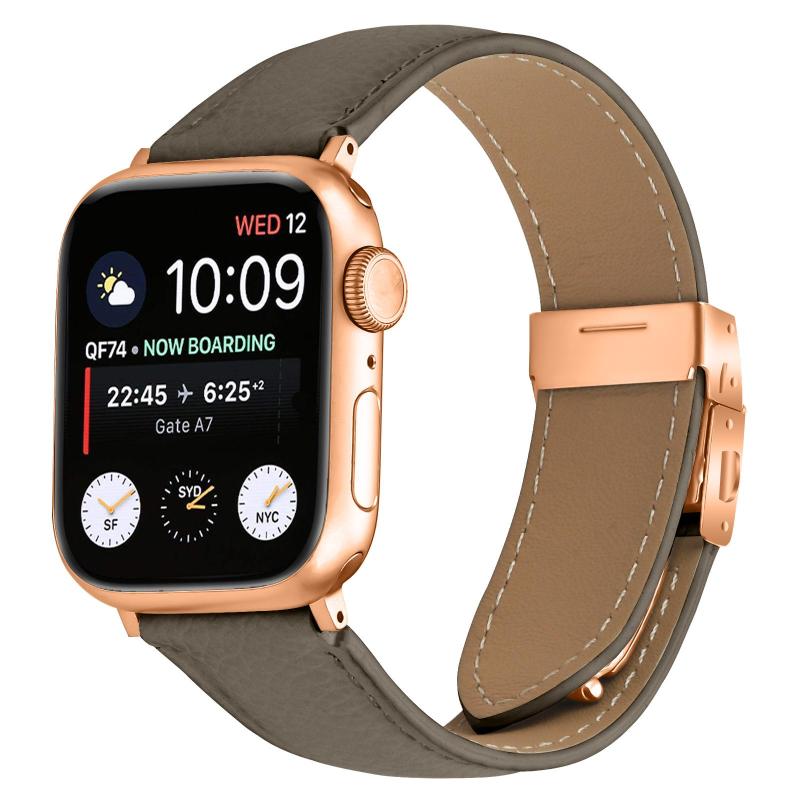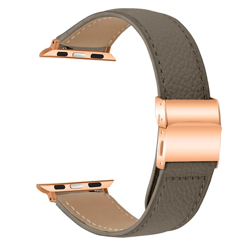 Για Apple Watch 42mm / 41mm / 40mm / 38mm Λουρί Ρολογιού από Δέρμα με Αγκράφα Turtle Back σε Χρώμα Ροζ Χρυσό με Υφή Λίτσι (Ροζ)