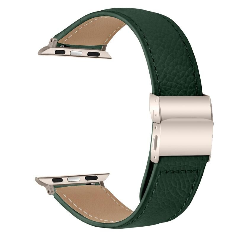 For Apple Watch 42mm / 41mm / 40mm / 38mm Lychee Texture Starlight Turtle Back Buckle Leather Watch Band(Green)