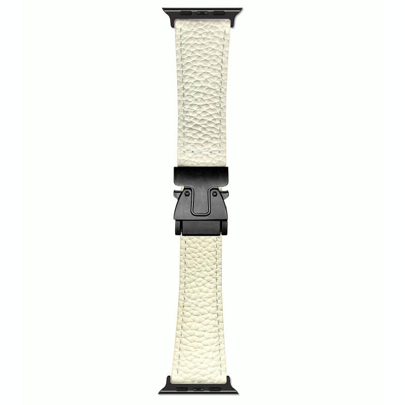 Για Apple Watch 42mm / 41mm / 40mm / 38mm Μαγνητική Αγκράφα Παρασύρου Λουρί Ρολογιού από Γνήσιο Δέρμα Λίτσι (Μπεζ)