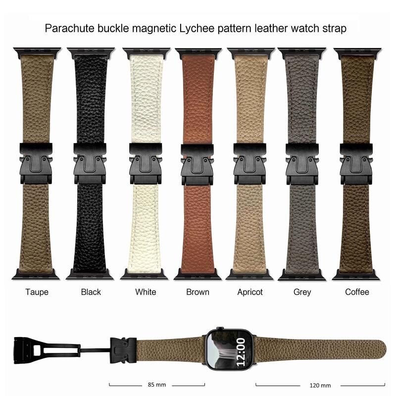 Για Apple Watch 42mm / 41mm / 40mm / 38mm Μαγνητική Αγκράφα Παρασύρου Δέρμα Λύτσι Αυθεντικό Λουρί Ρολογιού (Καφέ)