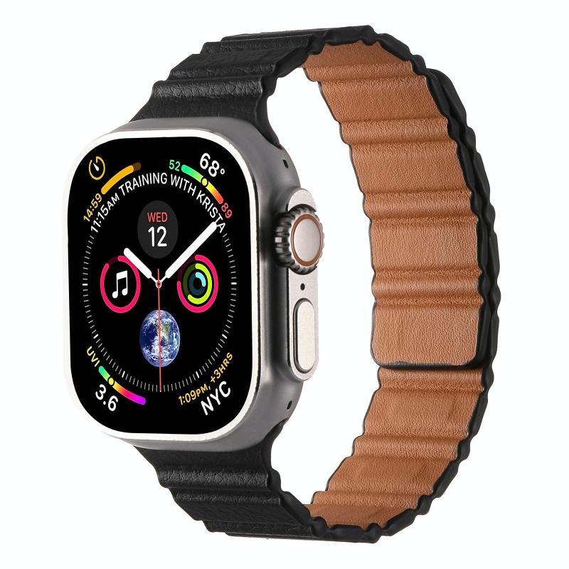 For Apple Watch 42mm / 41mm / 40mm / 38mm Magnetic PU Leather Watch Band(Black)