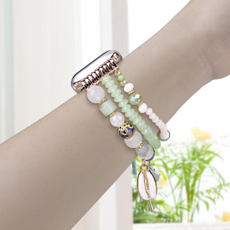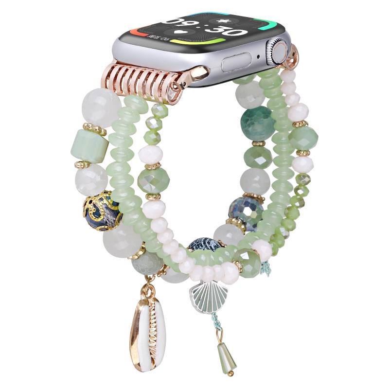 For Apple Watch 42mm / 41mm / 40mm / 38mm Shell Beads Chain Watch Band(Green)