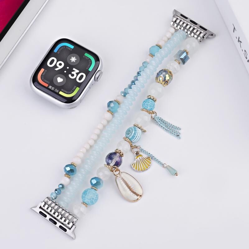 Για Apple Watch 42mm / 41mm / 40mm / 38mm Κέλυφος Μαργαριταρένιας Αλυσίδας Λουράκι Ρολογιού (Καφέ)