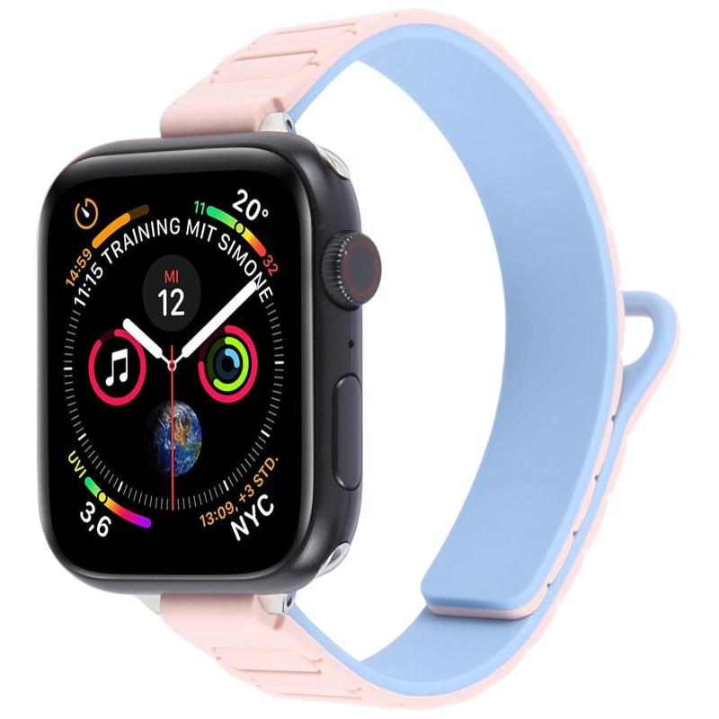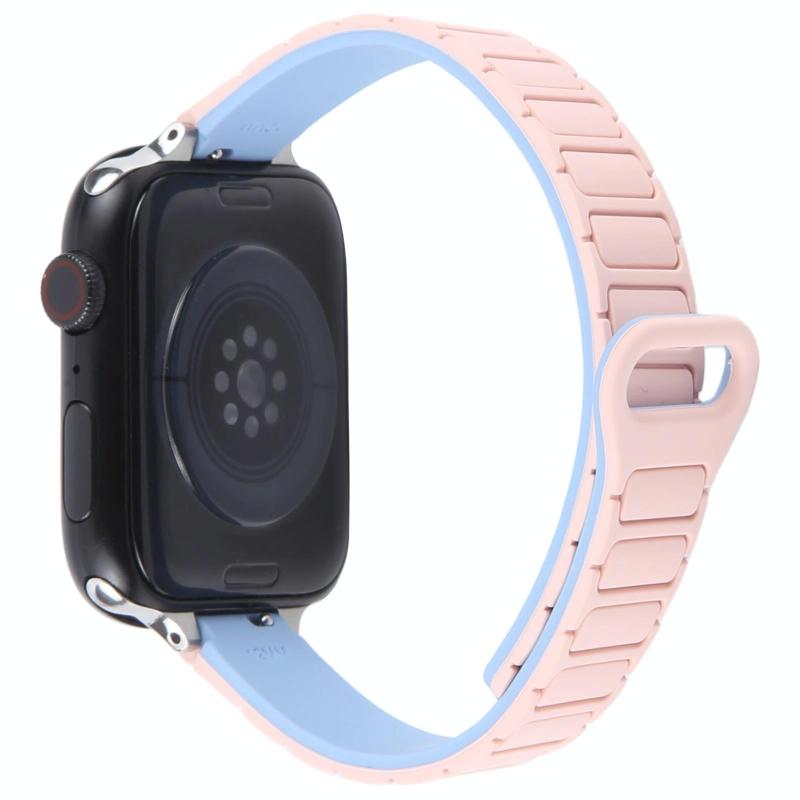 For Apple Watch 42mm / 41mm / 40mm / 38mm Slim I-shaped Magnetic Silicone Watch Band(Silver+Blue Pink)