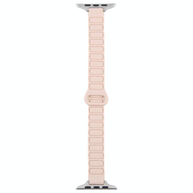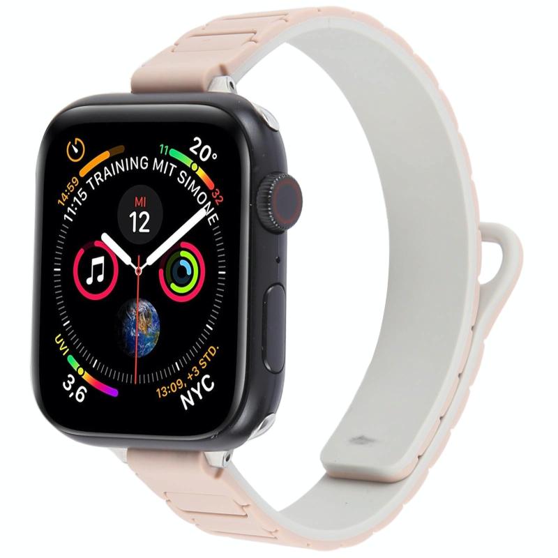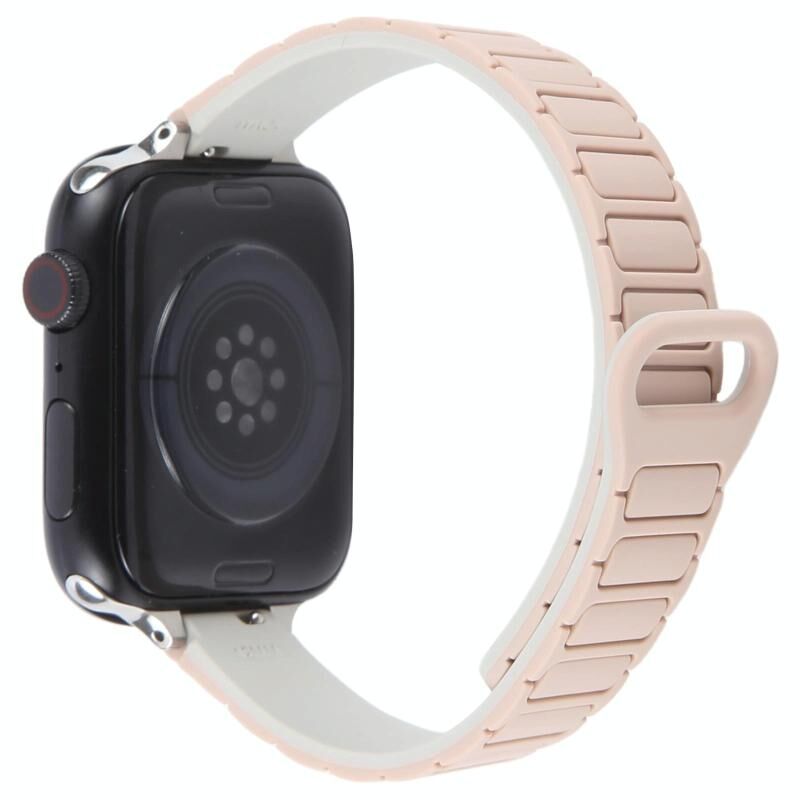 For Apple Watch 42mm / 41mm / 40mm / 38mm Slim I-shaped Magnetic Silicone Watch Band(Silver+Milk Tea Starlight)