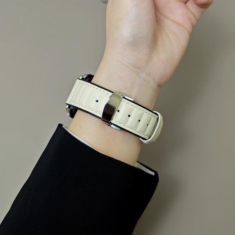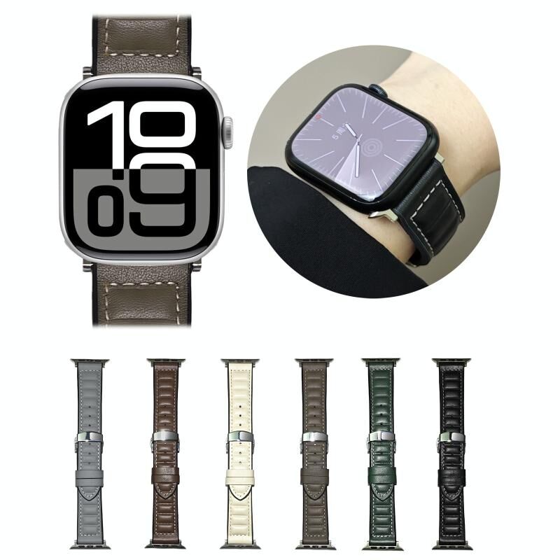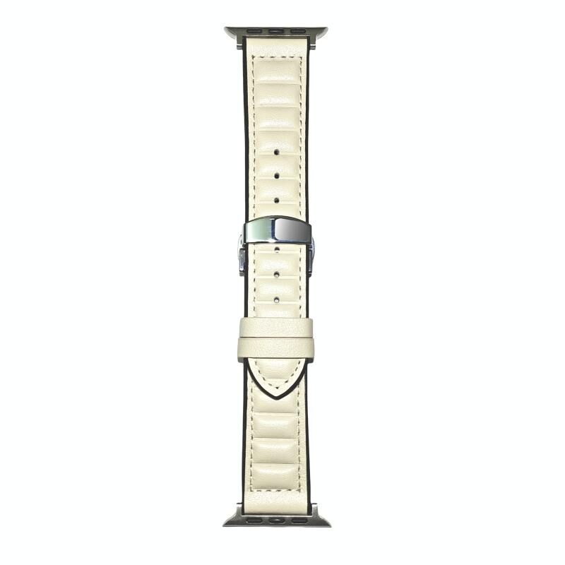 Για Apple Watch 42mm / 41mm / 40mm / 38mm Λουρί ρολογιού από γνήσιο δέρμα με αυλακώσεις και αγκράφα πεταλούδας (Μπεζ)