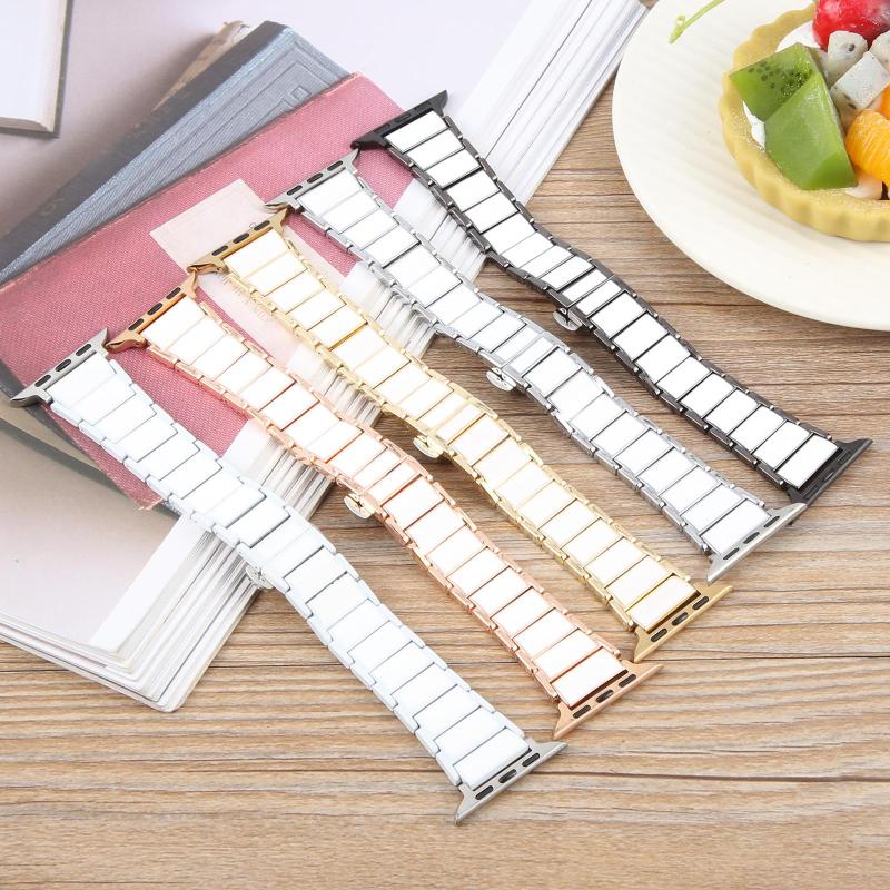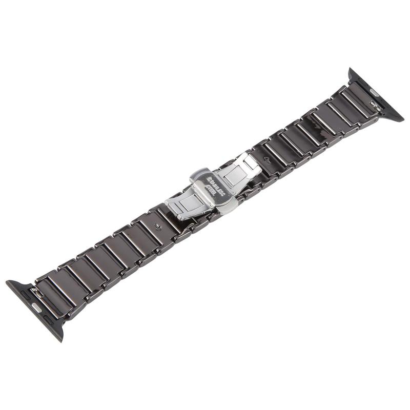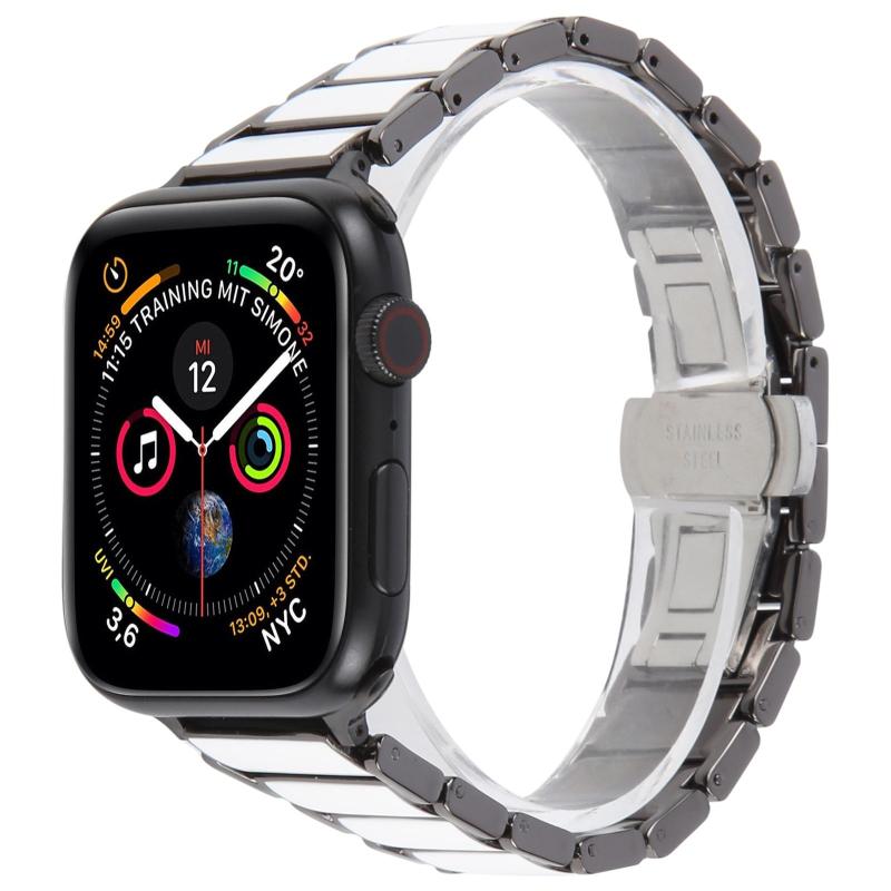 For Apple Watch 42mm / 41mm / 40mm / 38mm Three Beads Ceramics 18mm Steel Watch Band(Black White)