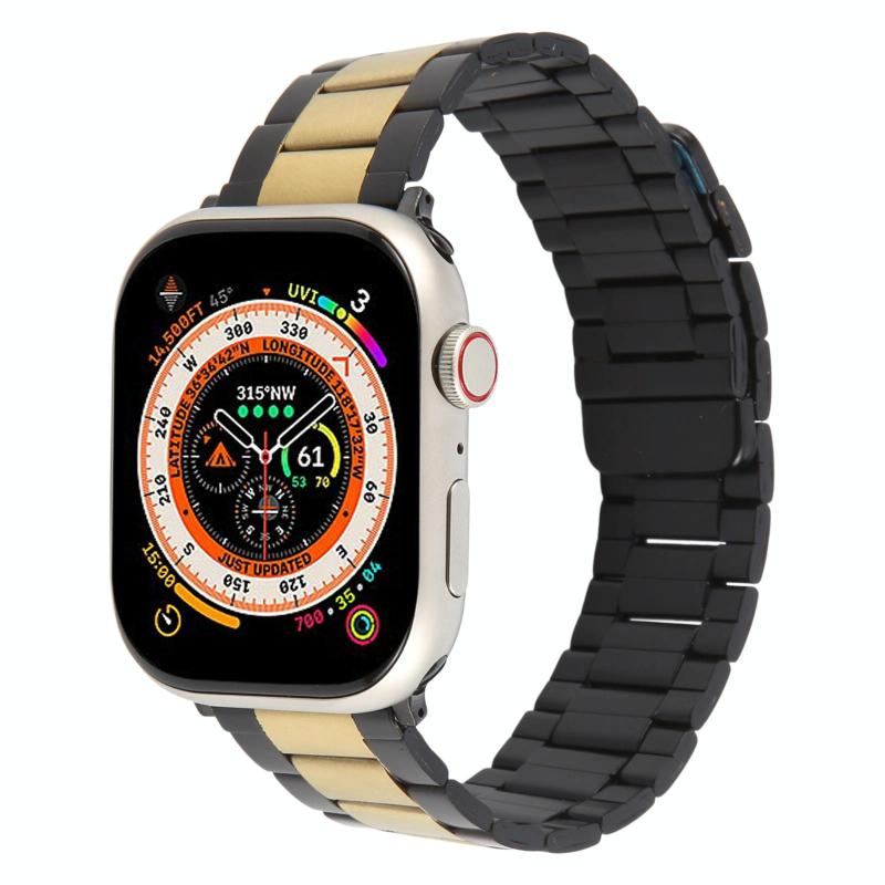For Apple Watch 42mm / 41mm / 40mm / 38mm Three-beads Magnetic Steel Watch Band(Black Gold)