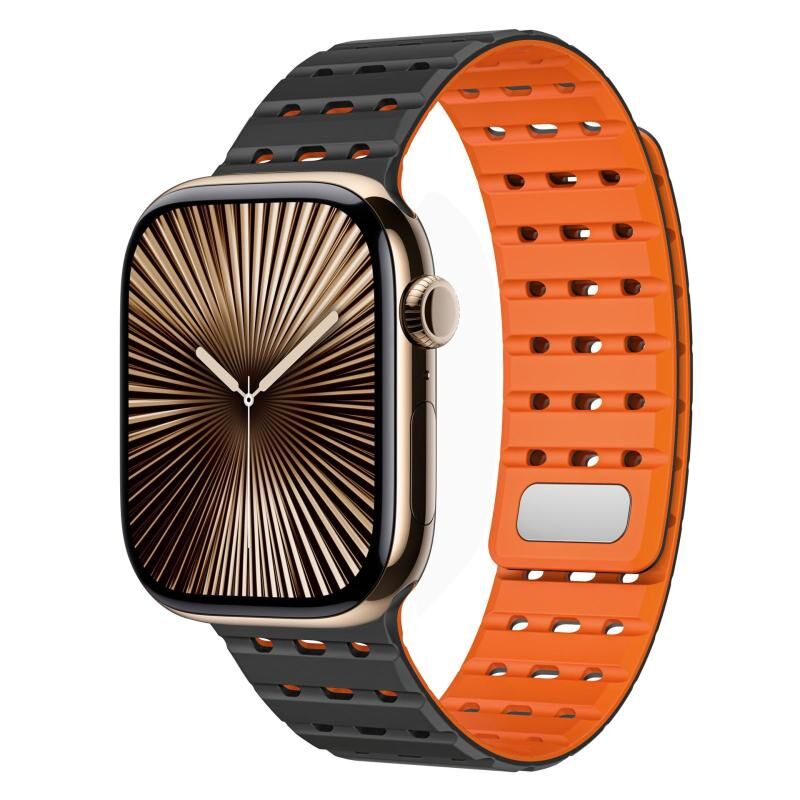 For Apple Watch 42mm / 41mm / 40mm / 38mm Two-Tone Breathable Magnetic Silicone Watch Band(Black Orange)