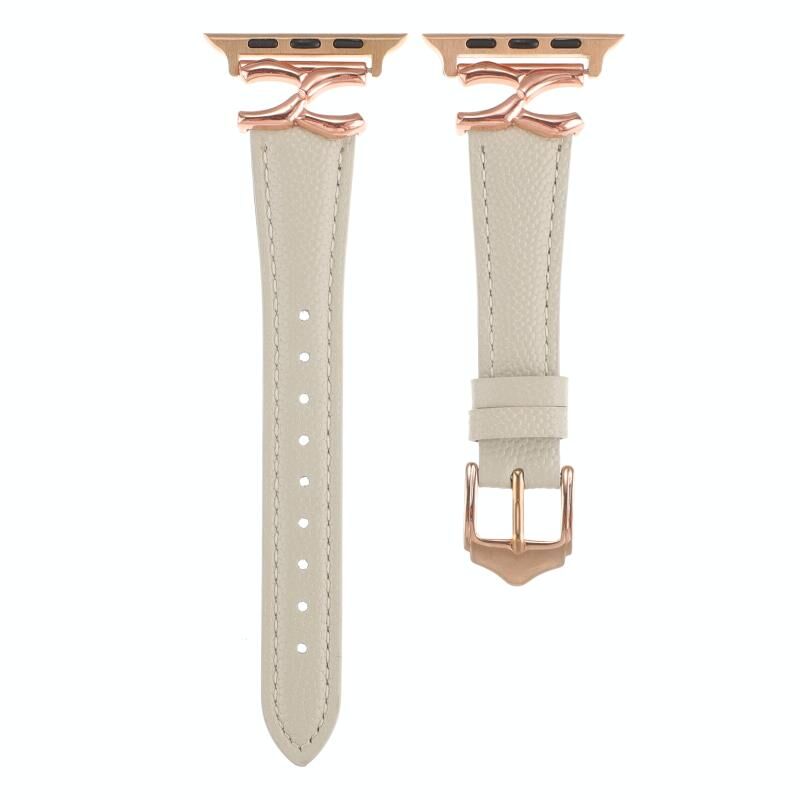 Για Apple Watch 42mm / 41mm / 40mm / 38mm Λουράκι ρολογιού από γνήσιο δέρμα με αγκράφα σε σχήμα Χ (Μπεζ)