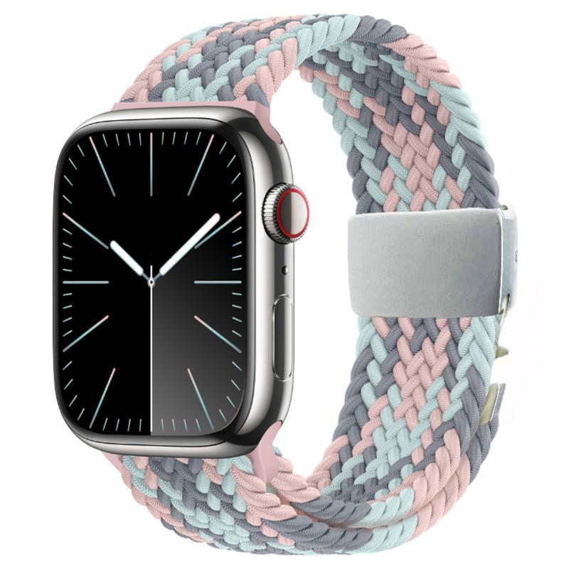 For Apple Watch 42mm / 9 41mm / 40mm / 38mm Metal Buckle Nylon Braided Watch Band(Pink White)