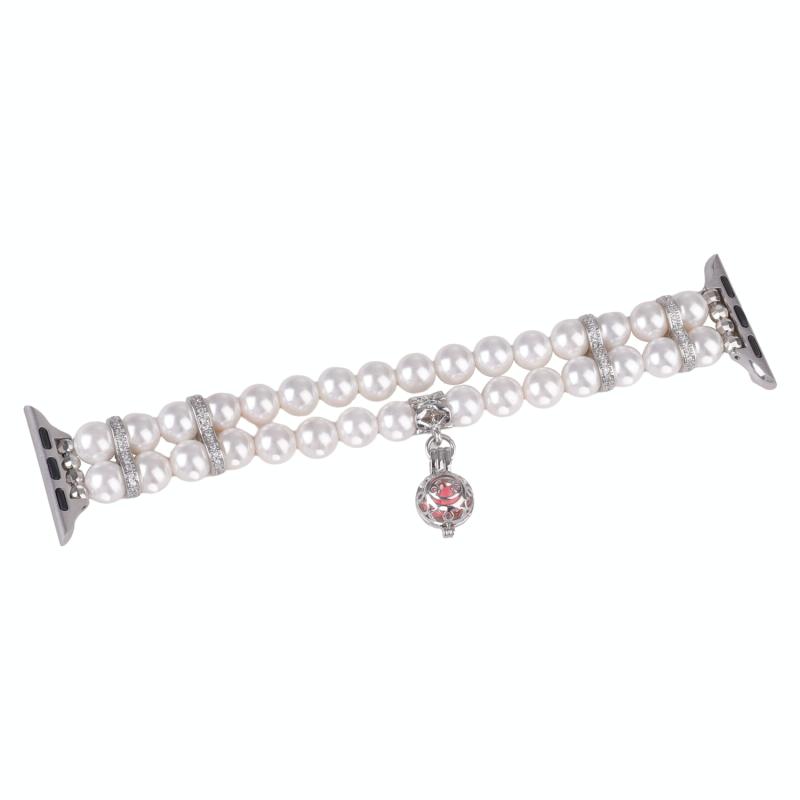 For Apple Watch 42mm Beaded Dual Row Pearl Bracelet Watch Band(White)