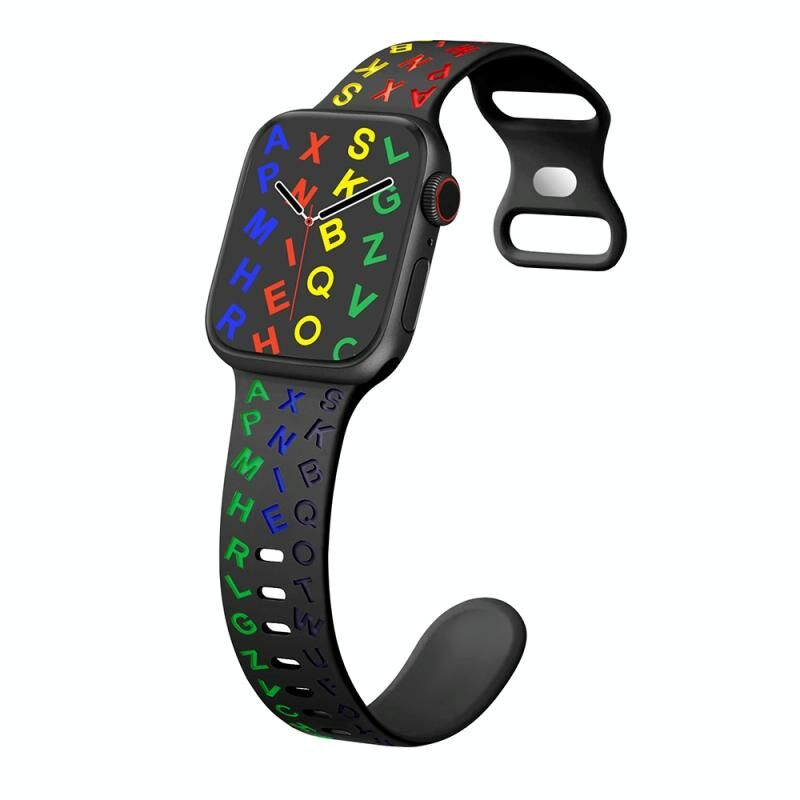 Για Apple Watch 42mm Λουράκι Σιλικόνης με Αγκράφα Πεταλούδας σε Αγγλικά Γράμματα (Λευκό Μαύρο)