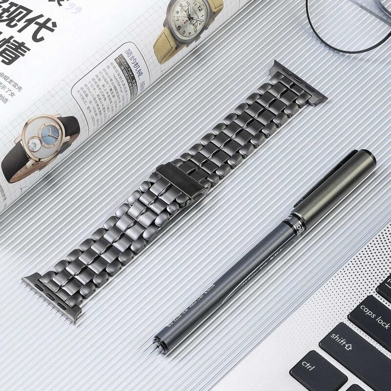 Για Apple Watch 42mm Λουράκι Ρολογιού από Ατσάλι Τιτανίου με Πέντε Χάντρες (Γκρι)