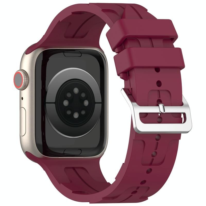 Για Apple Watch 42mm Λουράκι Σιλικόνης με Αγκράφα Σκάλας Υφής H (Κρασοκόκκινο)