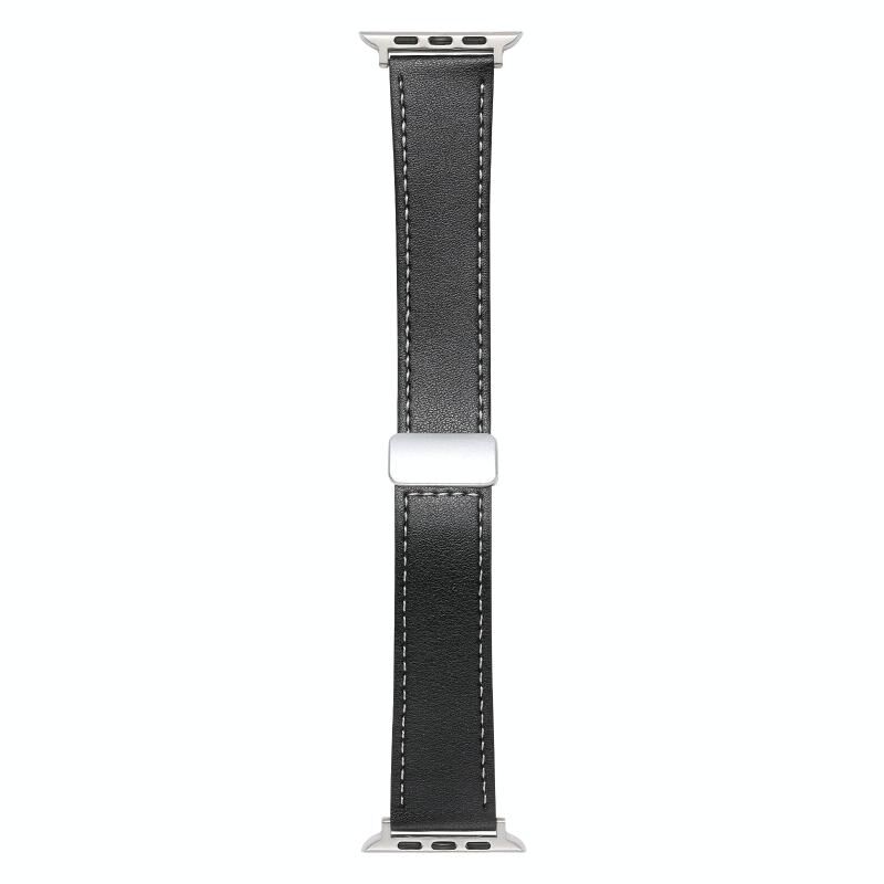 For Apple Watch 42mm Magnetic Buckle Skin Feel Leather Watch Band(Black)
