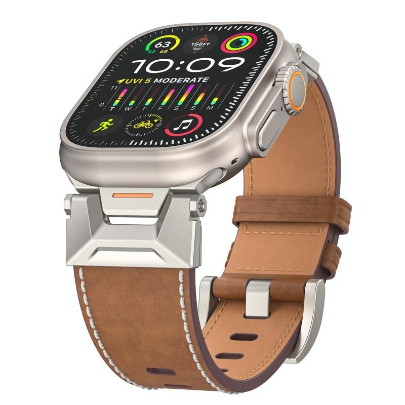 Για Apple Watch 42mm Δερμάτινο Λουράκι Στυλ Mecha (Σκούρο καφέ)