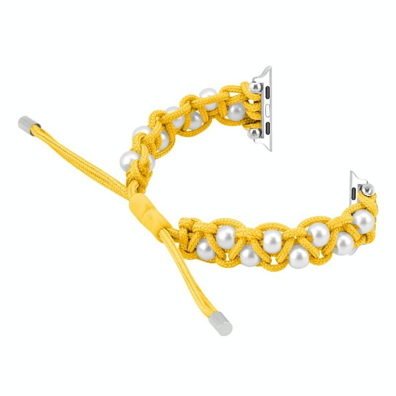 Για Apple Watch 42mm Παρακορδίου Γυψοφίλης Χάντρες Κορδόνι Πλεχτού Λουριού Ρολογιού (Κίτρινο)