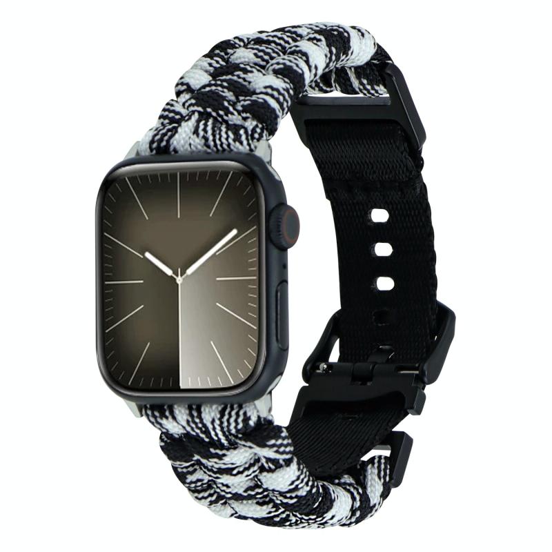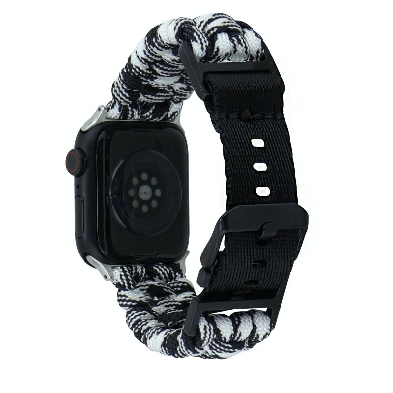 Για Apple Watch 42mm, λουρί ρολογιού με αγκράφα από κορδόνι paracord απλό πλεχτό (Μαύρο Λευκό)