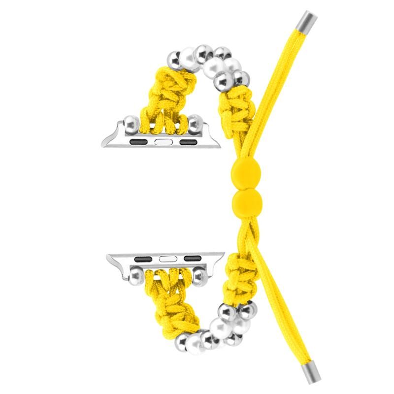 Για Apple Watch 42mm Λευκό Πλεχτό Μπρασελέ με Σχοινάκι Paracord και Χάντρες