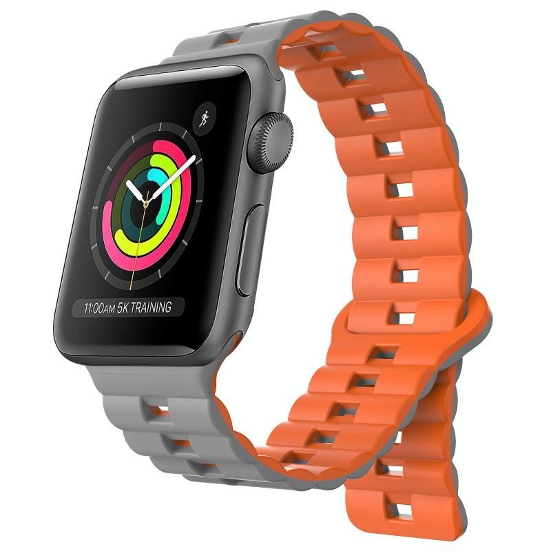 Για Apple Watch 42mm Μαγνητικό Δερμάτινο Λουράκι Σιλικόνης με Αντίστροφη Αγκράφα, Δύο Χρωμάτων (Γκρι+Πορτοκαλί)