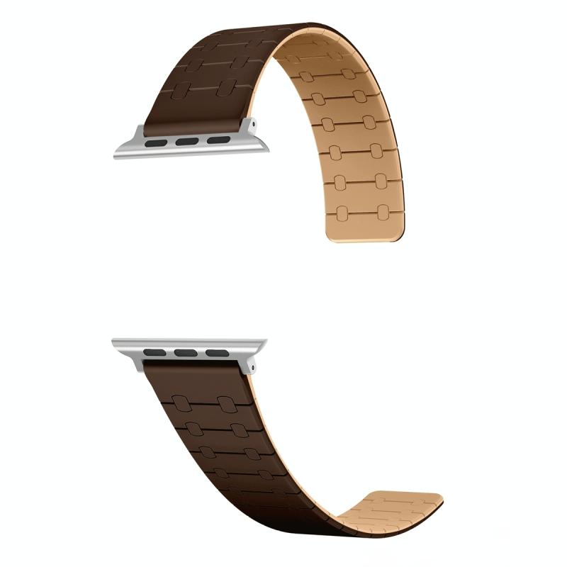 For Apple Watch 42mm Two Color Loop Magnetic Silicone Watch Band(Dark Brown+Light Brown)