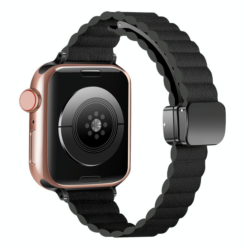 Για Apple Watch 42mm Μαγνητικό Κούμπωμα Δίπλωσης με Εφέ Νερού, Στυλ: Λεπτή Έκδοση (Ανοιχτό Καφέ)