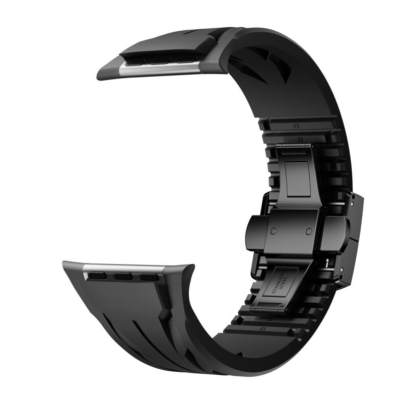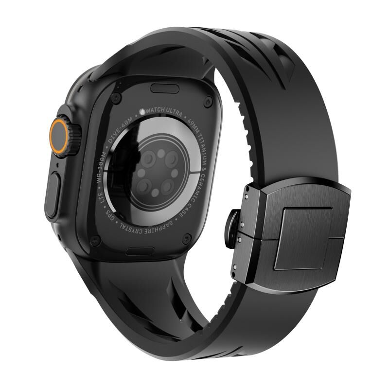 Για Apple Watch 44mm / 45mm / 46mm / 49mm Προσαρμοσμένο Ανοξείδωτο Ατσάλι Ασημί Κούμπωμα Πεταλούδας Λουράκι Σιλικόνης για Ρολόι (Μαύρο)