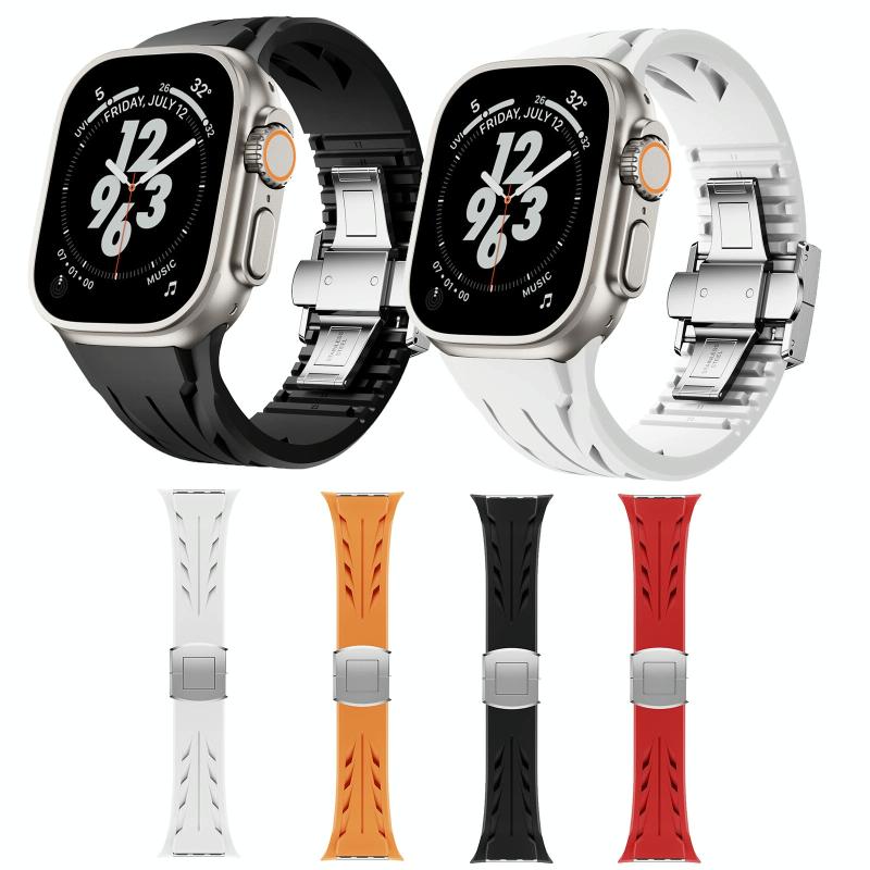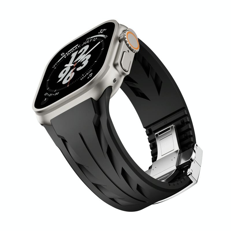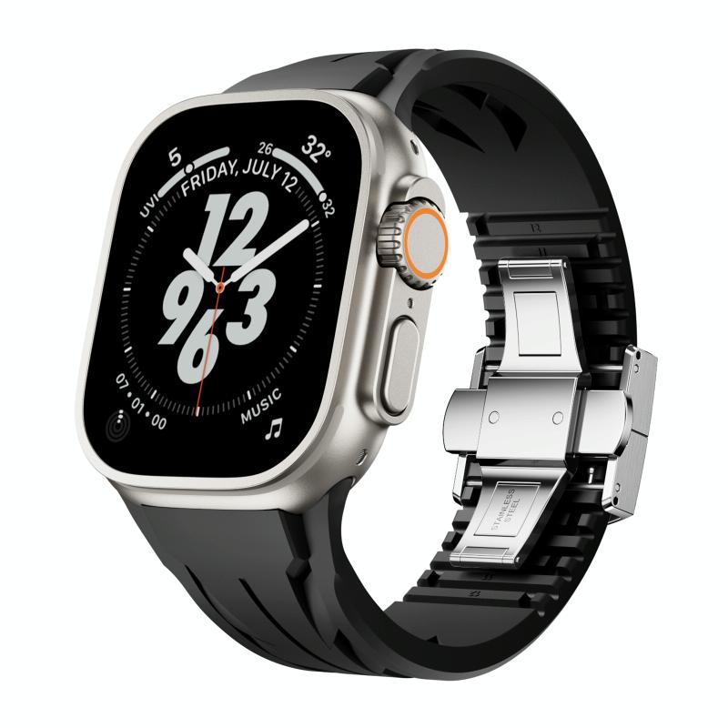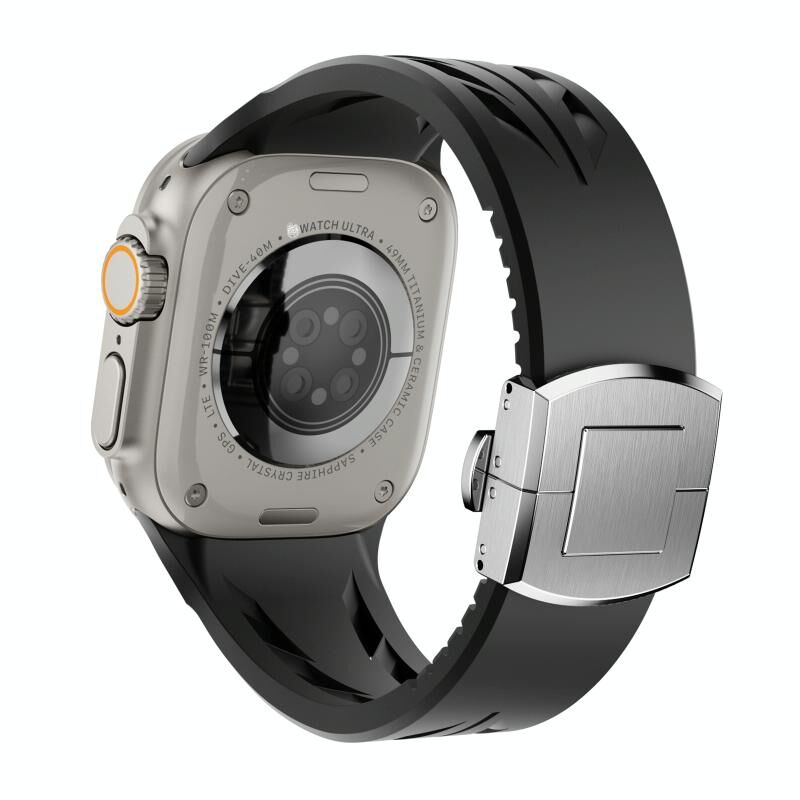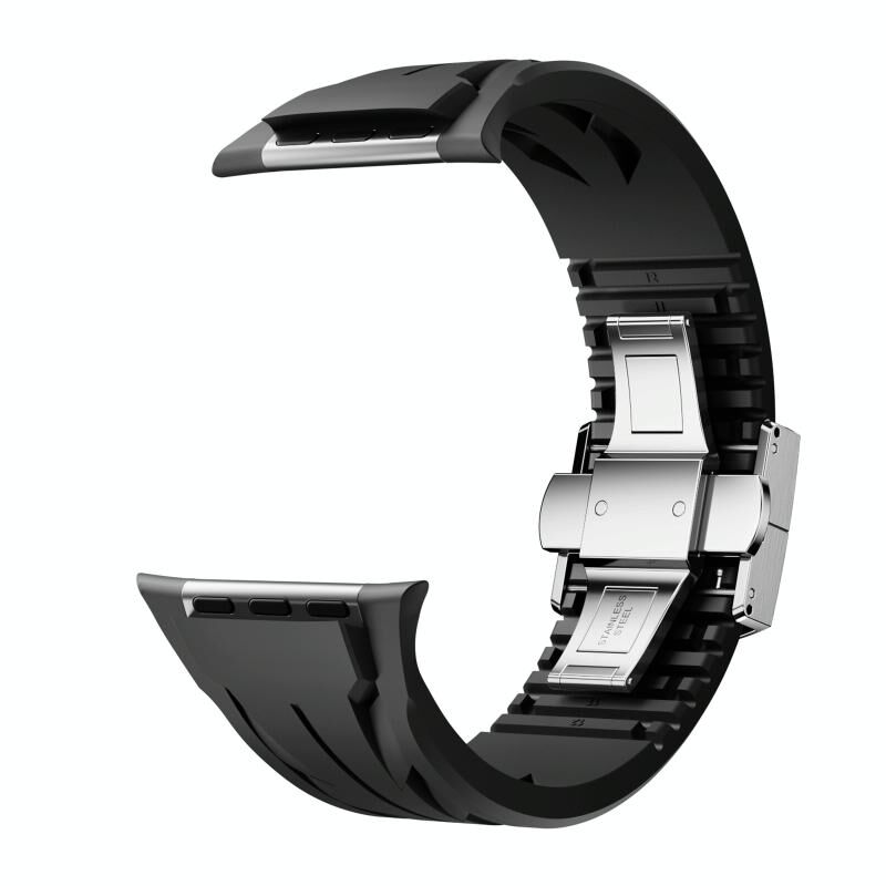 Για Apple Watch 44mm / 45mm / 46mm / 49mm Προσαρμοσμένο Ανοξείδωτο Ατσάλι Ασημί Κούμπωμα Πεταλούδας Λουράκι Σιλικόνης για Ρολόι (Μαύρο)