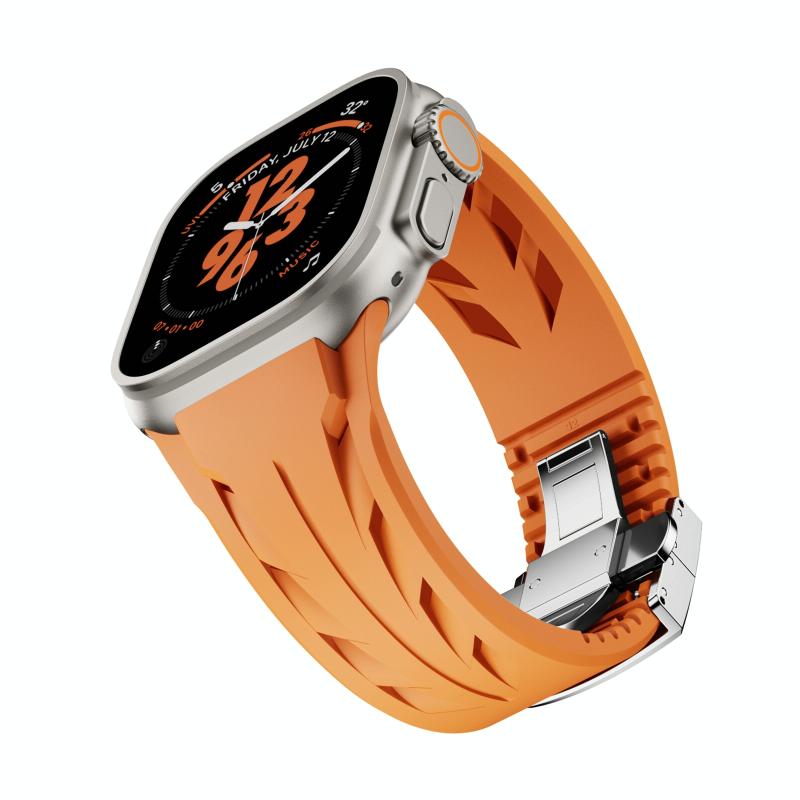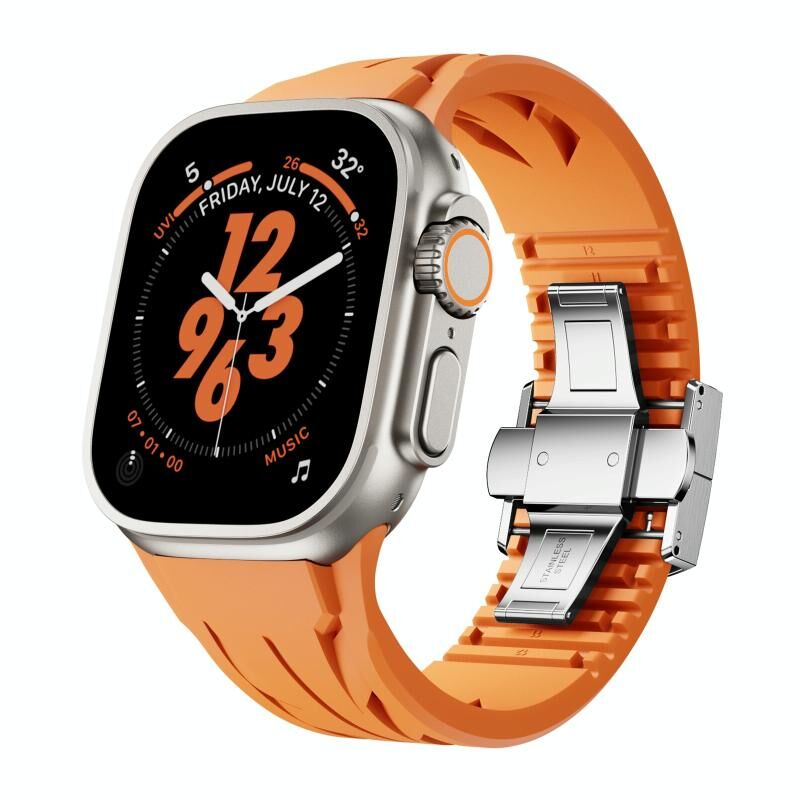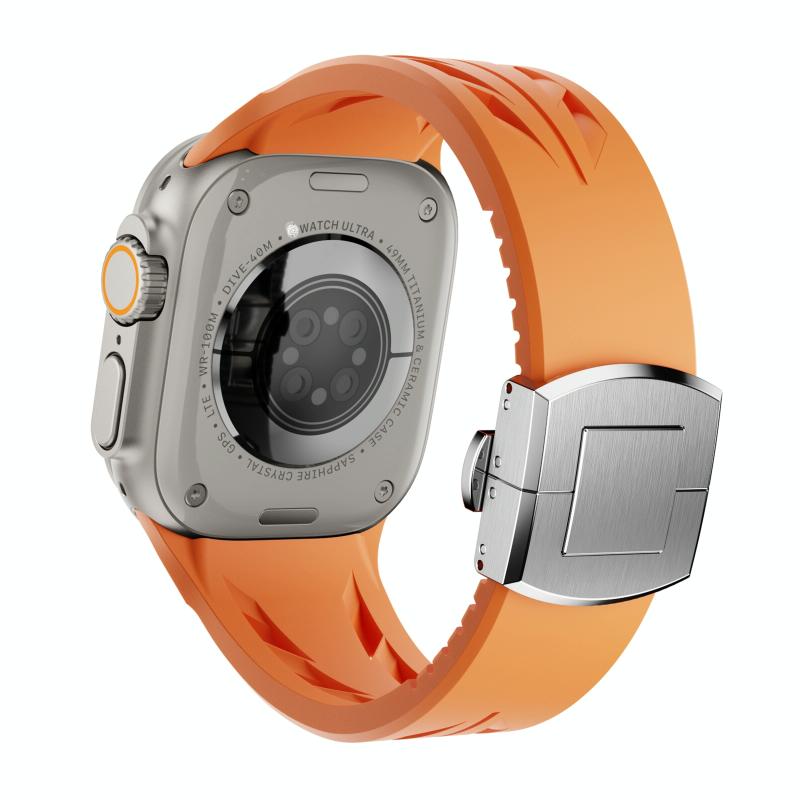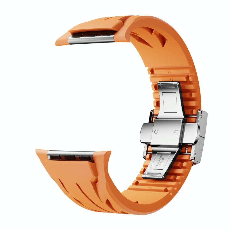 Για Apple Watch 44mm / 45mm / 46mm / 49mm Προσαρμοσμένο Ανοξείδωτο Ατσάλι Ασημί Κούμπωμα Πεταλούδας Λουράκι Σιλικόνης για Ρολόι (Πορτοκαλί)