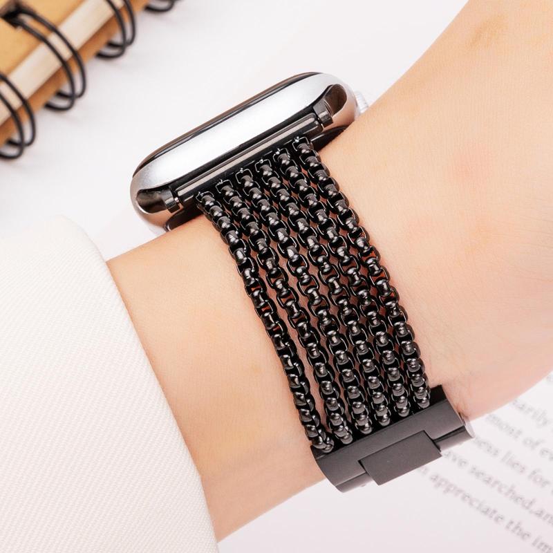 For Apple Watch 46mm / 49mm / 45mm / 44mm 6-Chain Stainless Steel Watch Band(Black)