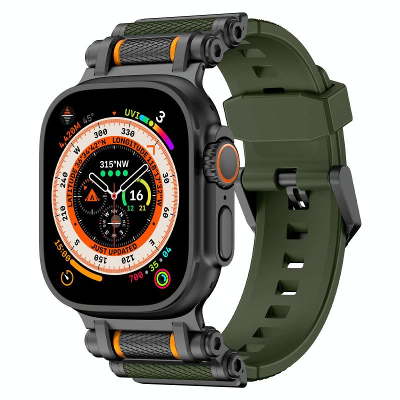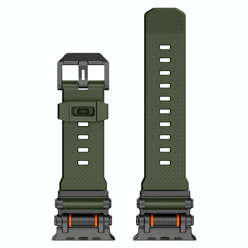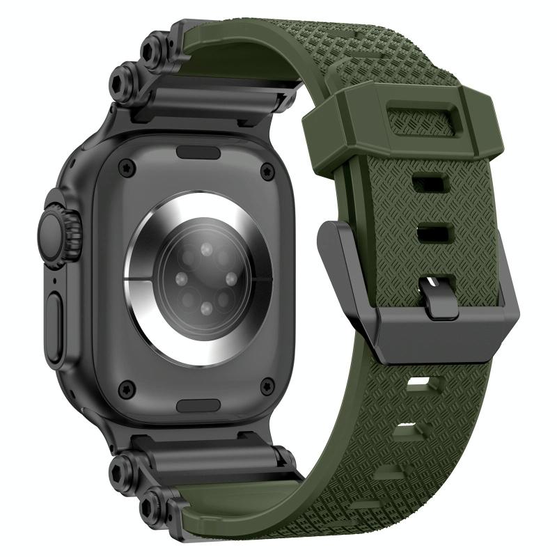 For Apple Watch 46mm / 49mm / 45mm / 44mm Armor Gear Silicone Watch Band(Black Green)