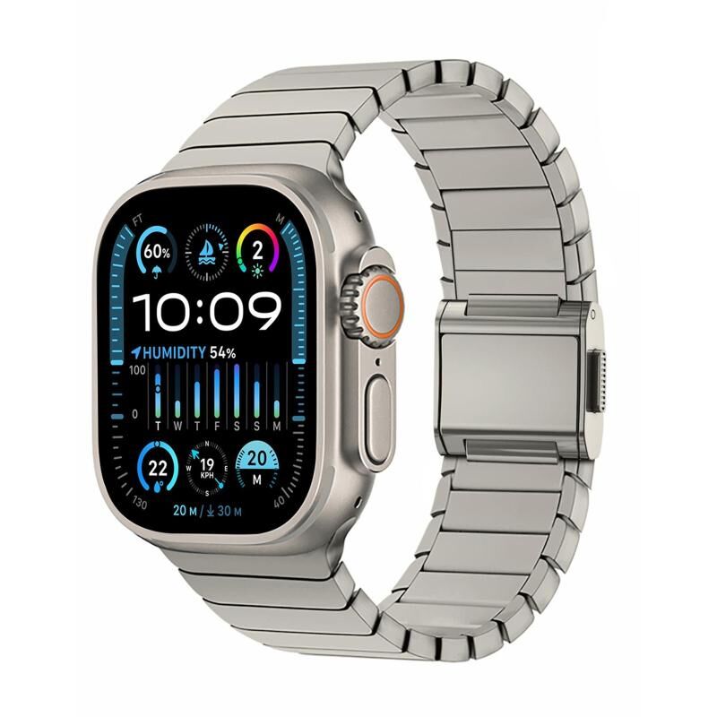 4. Κομψός και Σύγχρονος Σχεδιασμός: Η επίστρωση τιτανίου χαρίζει στο λουρί μια εξελιγμένη, μοντέρνα εμφάνιση, προσθέτοντας μια πινελιά κομψότητας στο ρολόι σας.