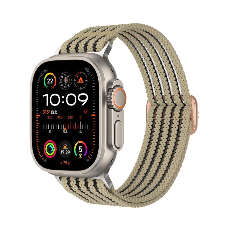 For Apple Watch 46mm / 49mm / 45mm / 44mm Breathable Nylon Fish Line Weaving Watch Band(Khaki)
