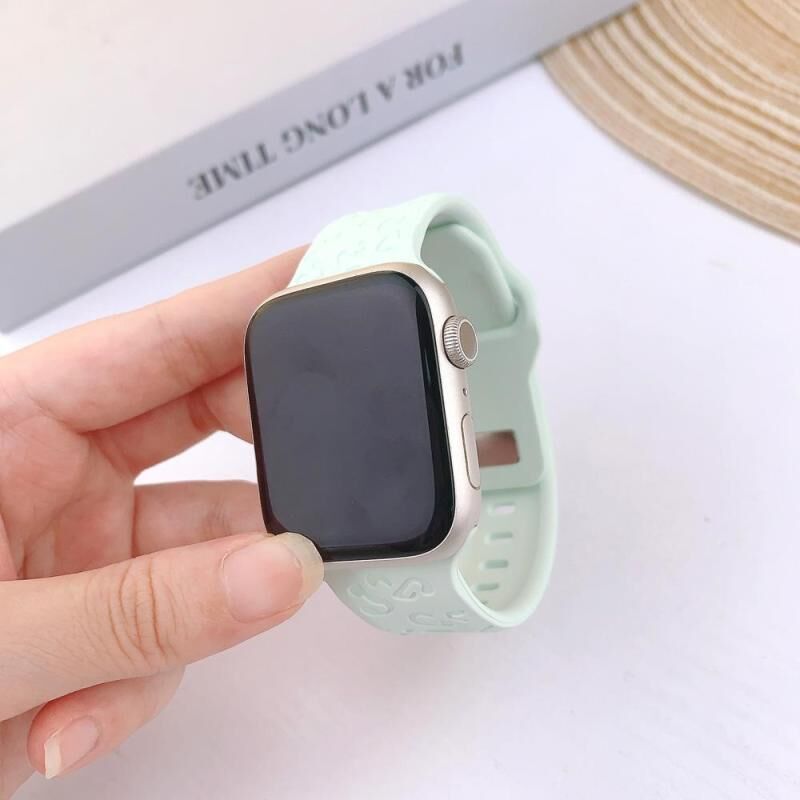 Λουράκι ρολογιού σιλικόνης με αγκράφα, κοίλο σχέδιο λεοπάρδαλης για Apple Watch 46mm / 49mm / 45mm / 44mm (Ανοιχτό Μέντας)