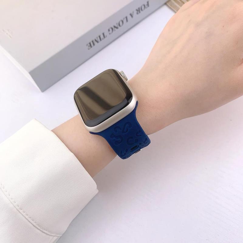 For Apple Watch 46mm / 49mm / 45mm / 44mm Buckle Concave Leopard Silicone Watch Band(Midnight Blue)