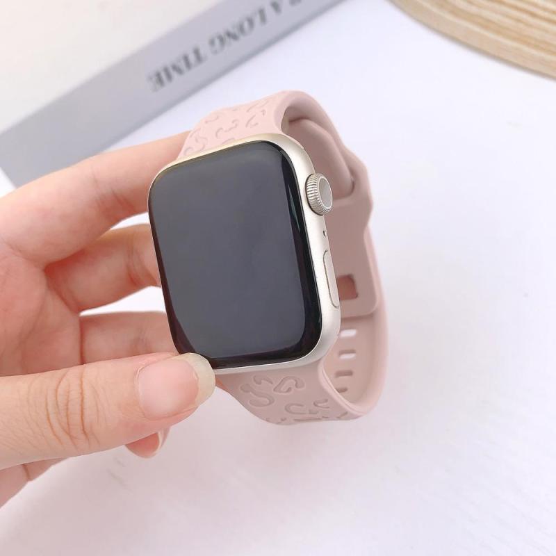 For Apple Watch 46mm / 49mm / 45mm / 44mm Buckle Concave Leopard Silicone Watch Band(Pink Sand)