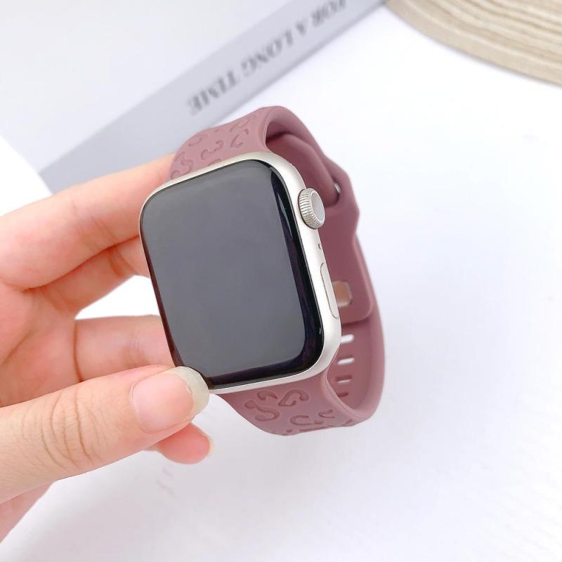 For Apple Watch 46mm / 49mm / 45mm / 44mm Buckle Concave Leopard Silicone Watch Band(Smoky Purple)